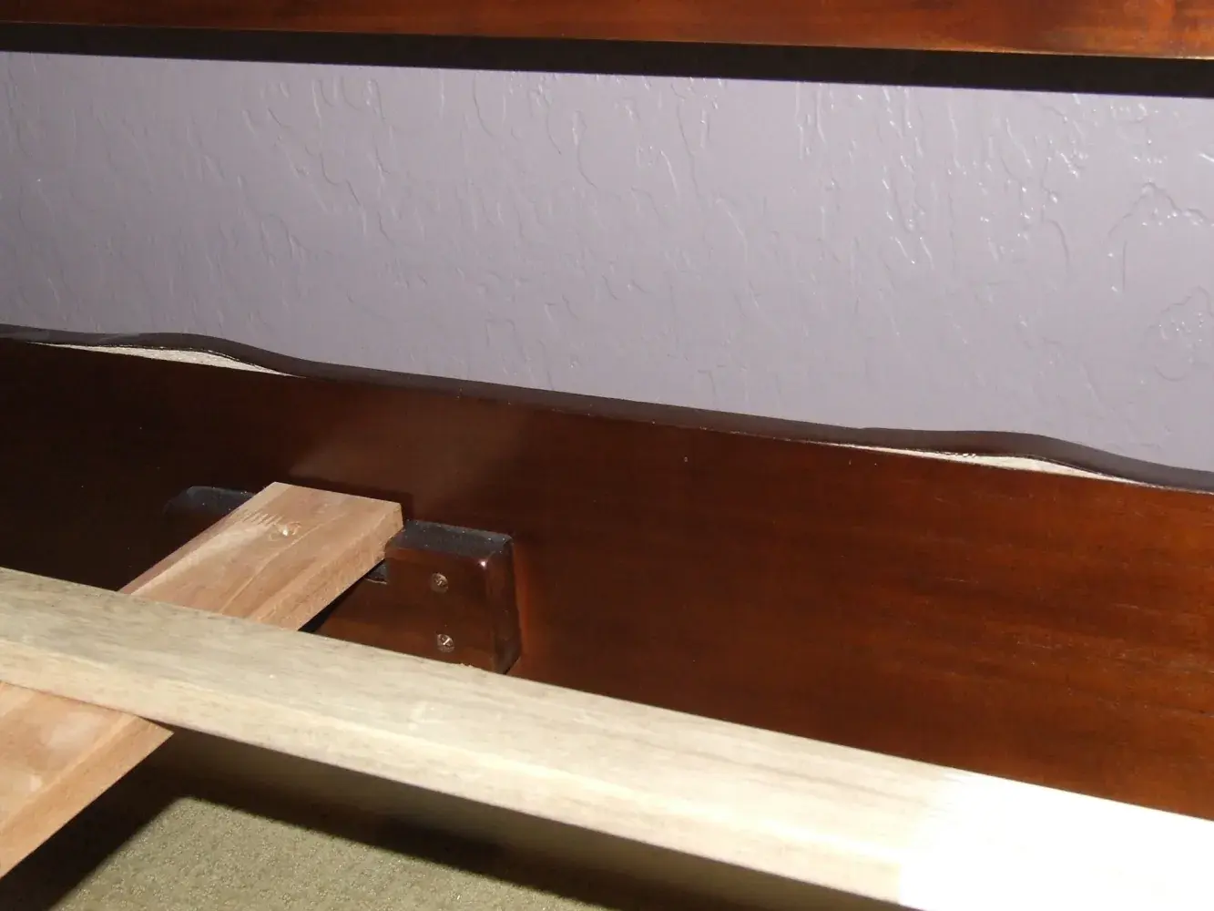 On 7/ 5/2011 I by chance noticed the veneer on the top of the bottom section had bubbled and pulled away from the board. This is not an area you would see daily since is behind the mattress.