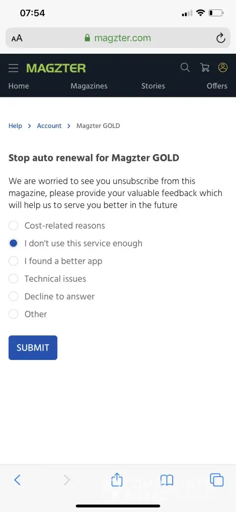 I signed up for the free trial based on information I saw on the iOS today show #444. I found that it didn't work very well on my iPhone as many magazines would load black screens. The issue with Magzter is that they don't make it easy to cancel. If you search cancel Magzter you're given info on how to do it via Apple ID which doesn't work if you sign up from their website. When I logged into my Magzter account it said I didn't have any subscriptions and my Magzter Gold trial would end 31st May 2019. I figured I must have already canceled it. Then on May 30th I notice a pending charge for Magzter on my Visa online statement. I emailed Magzter on May 30th and they replied asking if I could forward them my cancelation confirmation, it was then that I figured out via a web search that many others have had the same issue with Magzter. Although I think their service can be a good value for some if it works, I believe they are purposely misleading customers by indicating they have no subscription then billing before the trial period is up and the only way you can cancel is to email them. They refused a refund for a billing that was early and I communicated I didn't want but offered a credit which is basically the same thing a taking my money without authorization.