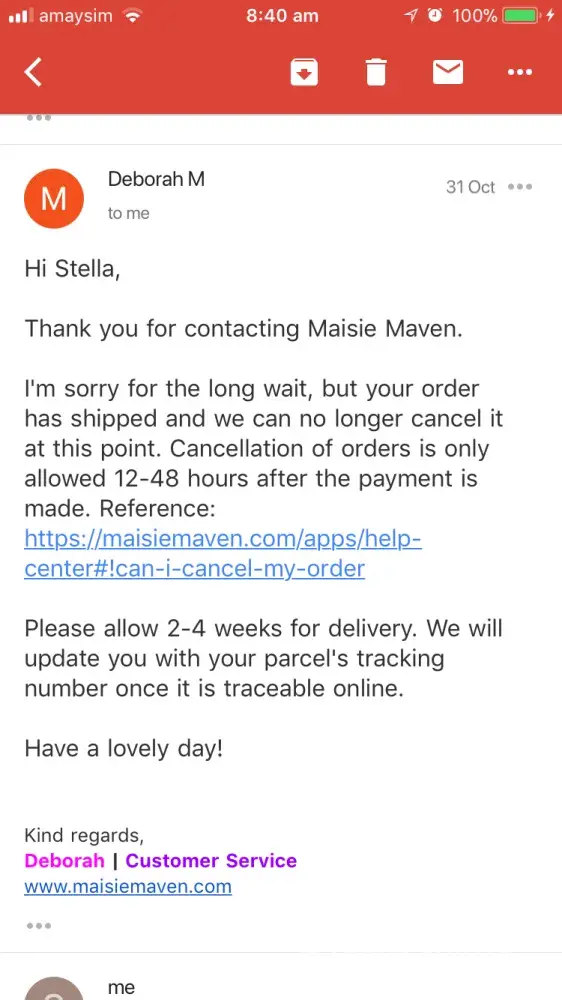 Paypal are partners in crime with Maise Maven and are encouraging fraudulent transactions. I gave them 48 hrs if you don't issue a refund, they'll be reported across social media, the police, and all governance authorities