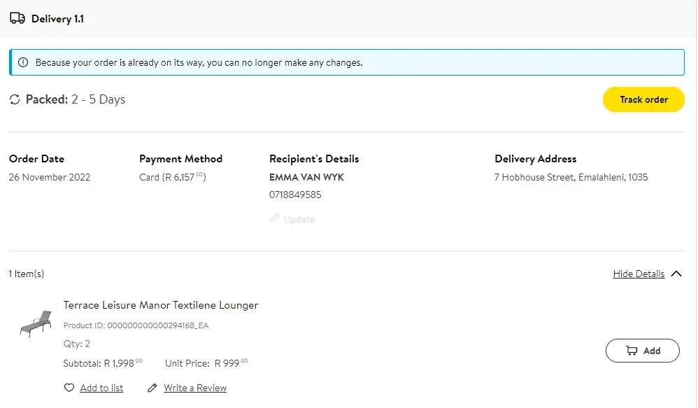 I ordered this table on the 3rd of July, delivery of this has been a nightmare. The 1st piece was delivered on the 8th of July, only to find that this was the drawer only, nothing else. I went to the Strubensvalley Store on the 11th of July, to which I was redirected to this horrible portal. I then logged a request for refund on the 13th of July, and I have called the call centre a million times, they have promised feedback (to which none was recieved), I've requested to speak to a team leader (and I would just be put on hold for long ). The costs of calling the call centre are not even taken into consideration.