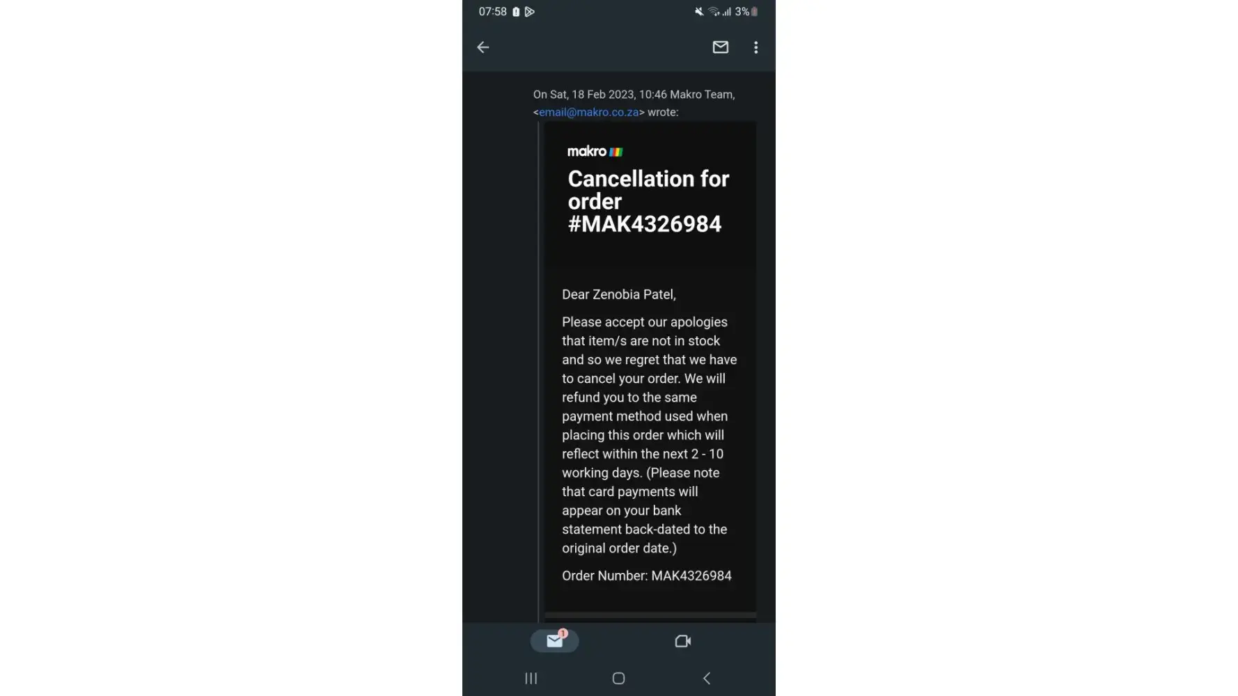 Makro's service SUCK! I have provided the correct telephone number to contact me for delivery - MAKRO re-typed it incorrect, so my my parcel was not delivered, although I have received an e-mail that it was delivered! When phoning, Molwantha and Nthabiseng,🤬 at [protected] they do not want me to speak to a supervisor! NOT ACCEPTABLE! I have placed my order 26/3/2023 and have not received it up to date! Today's date is 04/04/2023!