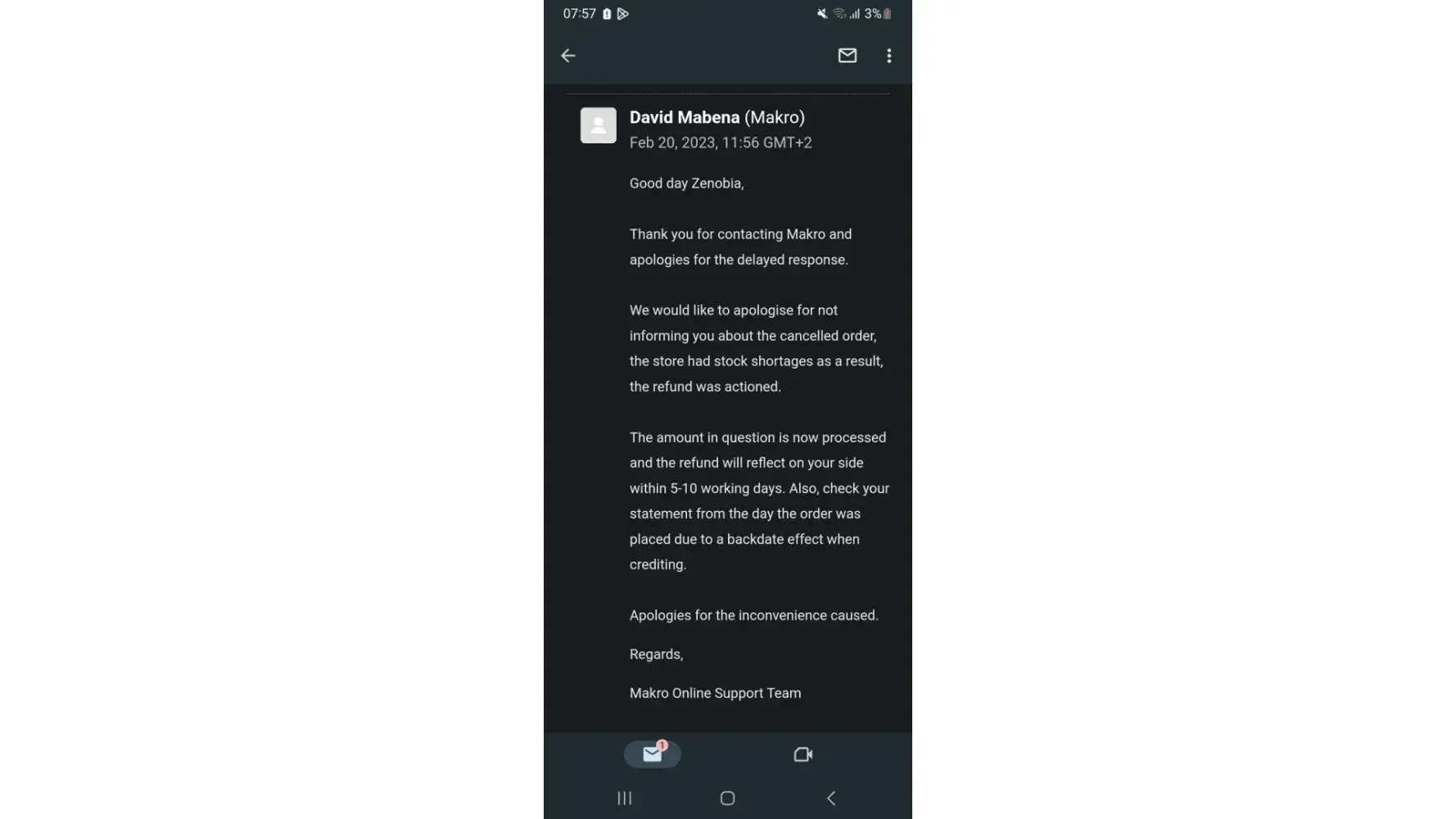 The following day I logged a call advising of the defaults and I was advised to send pictures and so I did . Considering the 48 hours turn around time for Makro respond , no acknowledgment of receipt of email . I called in again and the consultant bluntly said they didn’t receive anything - we reconfirmed email address and it turned out that the emails were correct . Towards the end of the he indicated that they managed to locate the emails and will escalate the query however till date nothing has come to fruition instead all I’m getting are promises from one agent to the another .