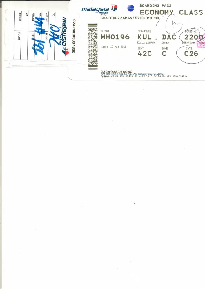 Afterward, we move two steps checking and finally closed to gate C26-27. The staffs were permit all other 5 members luggage and raised my hand luggage is heavy and I have to charge MYR 100.00 for each KG. Prior to 10 minute of departure I was sudden shocked to face such unwanted situation? I try to make MH staff understanding but they refused and finally take USD 250.00 from me by mental force. They want more and I said I haven't not a single penny. Finally, they issued a receipt which is almost illegible and permit to go to flight. Thinking time constraint, I shocked and boarding. I am not a frequent traveler but at least twice or thrice in a year. From Last September 2017 I try to choose KUL airport and MH as I was pleased to see the facilities onwards. But this time while departing KUL-DAC I saw to opposite role of KUL and MH personnel.