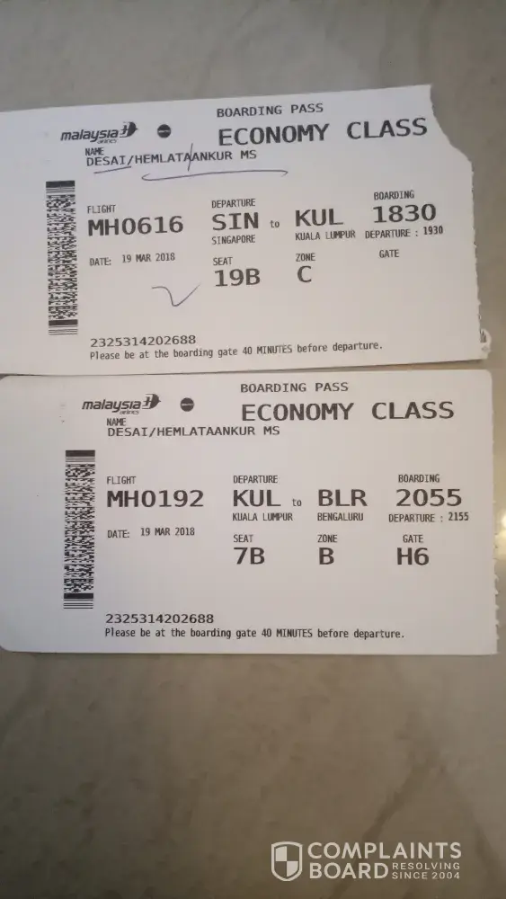 I had no issues with other airlines except Malaysia Airlines and this is not the first of numerous negative experiences. Shameful
