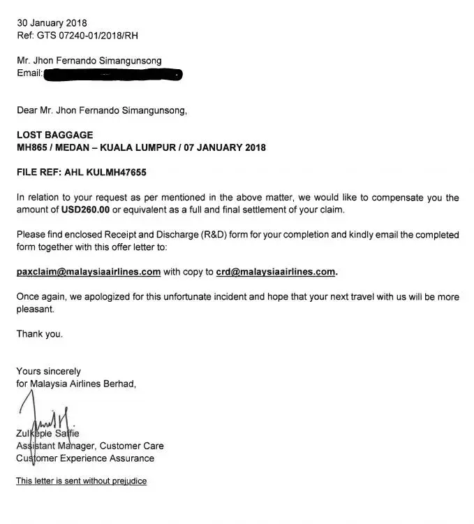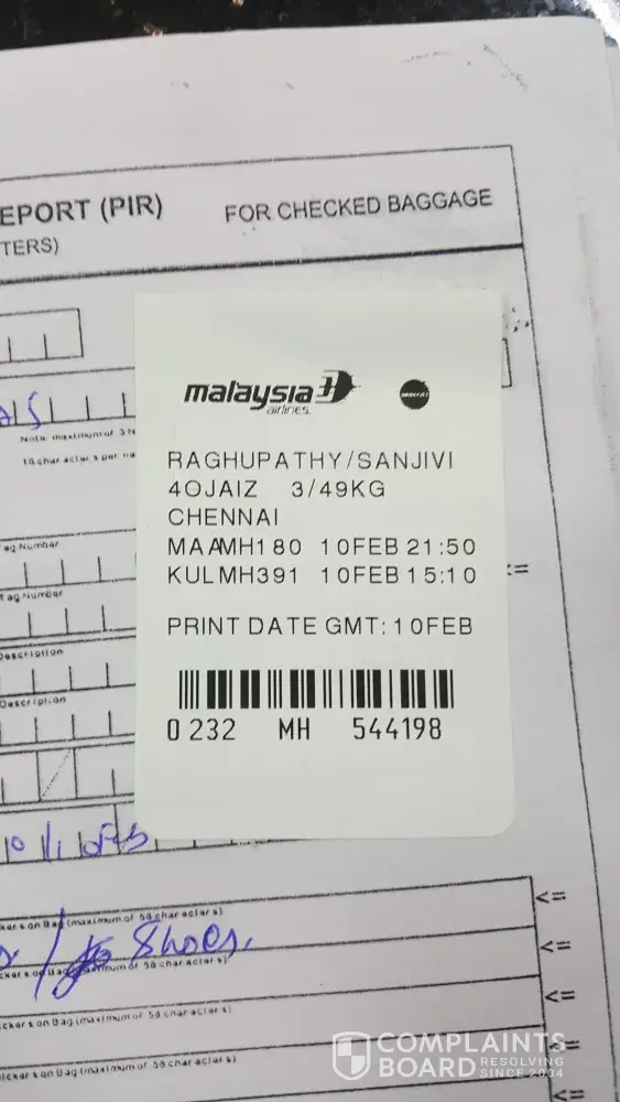 lost baggage during my flight mh865 from medan/kuala namu to kuala lumpur
