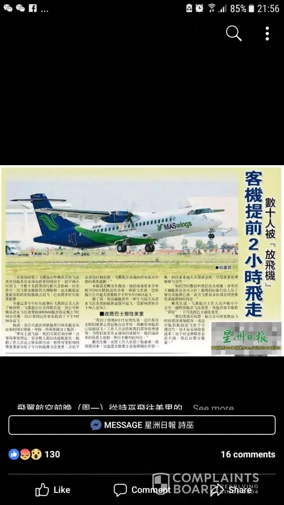 Malaysia Airlines Customer Care Centre (customer. [protected]@malaysiaairlines.com) failed to respond and even worse, they are not reachable. FB team don't even read by giving nonsense reply.