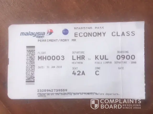 I am writing to complain about a recent journey I took with Malaysia Airlines, from London (Heathrow) to Kuala Lumpur. Details are as follows: