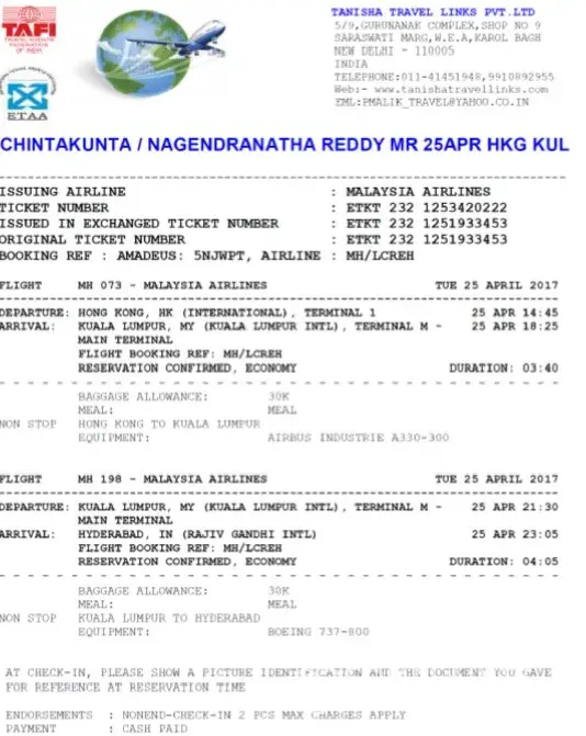 I am CHINTAKUNTA Nagendranatha Reddy, bearing indian passport G8535596, have booked my ticket from Hongkong to Hyderabad via., kaulalumpur scheduled on 25th April 2017. But due to delay in flight (form airlines side), I was supposed to board Mumbai flight from Kaulalumpur rather than hyderabad flight.