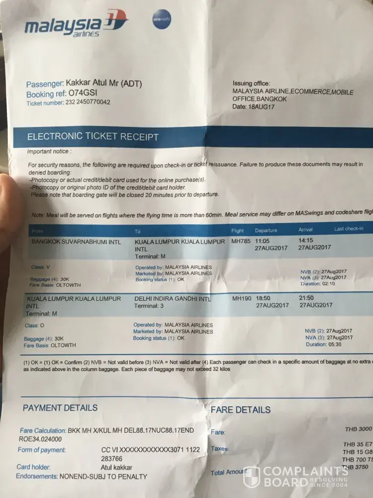 Received a reply to my complaint today...completely swept it under the carpet, did NOT answer one question raised. Muhammad Najib Mohd Taib is that really the best you can do?