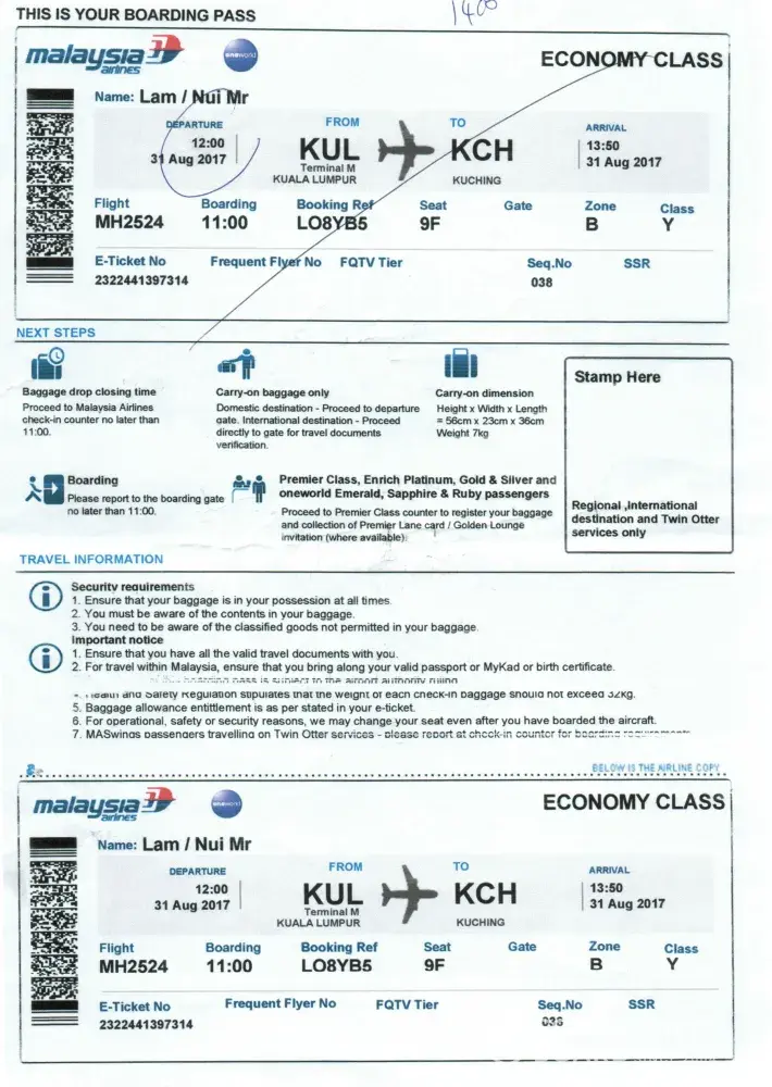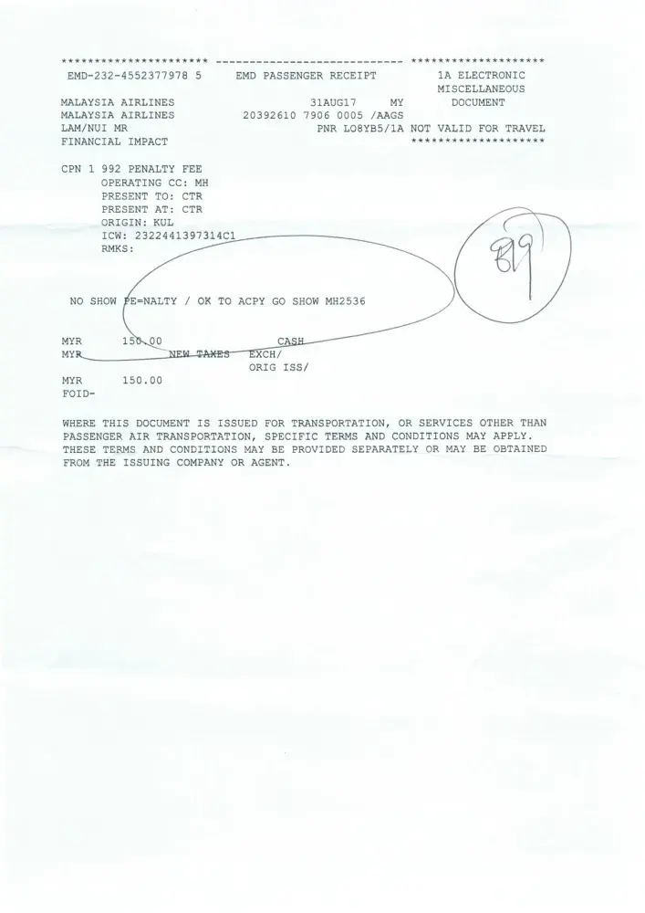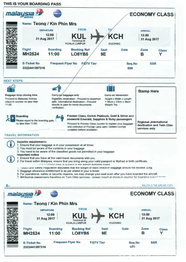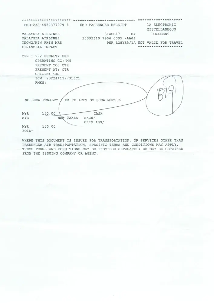 The following email was sent to Malaysia Airlines on 16 August 2017 as we were advised to do by their call centre. We have received no reply to date.