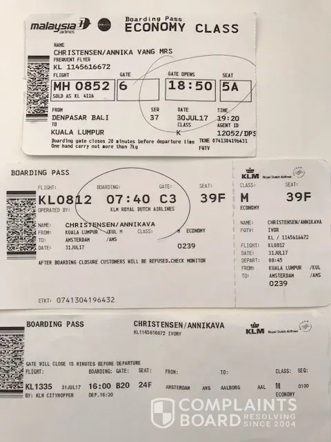 I’m writing regarding a compensation request for our delayed flight from Denpasar to Kuala Lumpur on July 30th 2017. The flight was delayed by approx. 50 minutes causing causing us to miss our connecting flight, resulting in a +10 hour delay for our final destination in Aalborg, Denmark. The overall delay was obviously caused by the poor rebookings provided by the Malaysian Airlines.