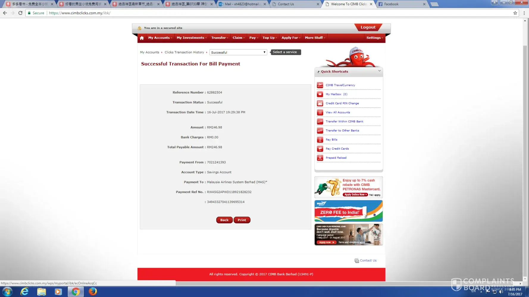 I have book a flight on 16 July 2017 from Penang- Kuala Lumpur- Kuantan. Flight date is 6 August 2017. While i do the online transaction, after the money transfer, my web page shows that booking fail due to some reason, but i still being charge the fee for the flight. I didnt receive any confirmation email on booking done. so i assume there us a problem somewhere. hoping for the reimburse from your company