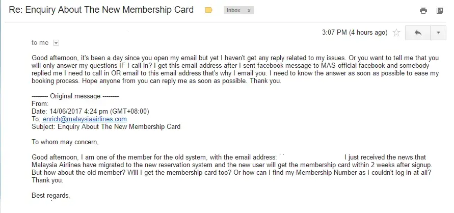 (yes, HOURS!) but still no reply! This is ridiculous. No, beyond ridiculous. I'm going to lodge an official complaint to the ministry of transportation. Shame on you, Malaysia Airlines!