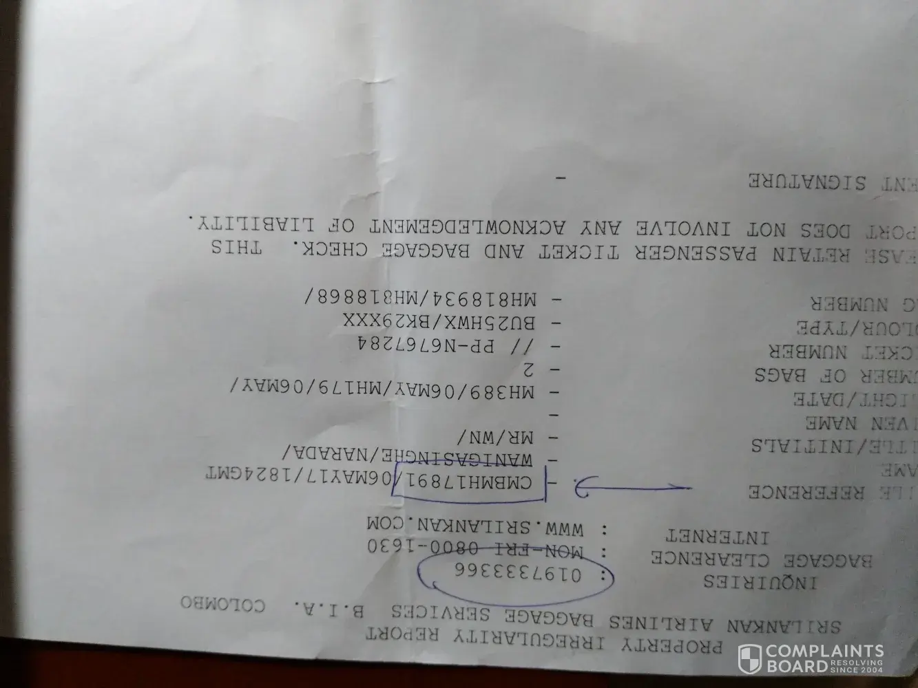 mishandling of baggages and no reply for the claim