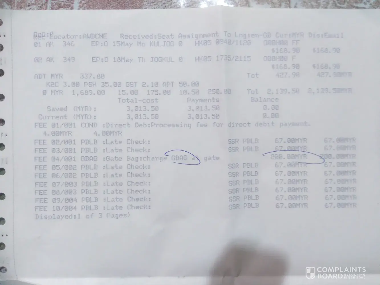 My friend and I was travelling from Penang to Kuala Lumpur on 15th May 2017 with MAS flight MH1133 5.50am. We arrived at KLIA as scheduled around 6.50am and my friend manage to collect her luggage around 7.15am. However, my luggage with other 2 passengers was delay for about 90minutes. I was told by the staff that my luggage was misplaced with transit luggage. I was then rushed to KLIA 2 via KL transit and arrived at KLIA 2 around 8.30 to catch my flight to Jogjakarta at 9.40. Unfortunately I unable to check in my luggage as the counter said the gate already closed and I need to pay Rm 200 for the GBAG. I also unable to bring on my cleanser and toner (which I just bought a week ago which cost me rm150) on board as it exceeded 10ml. I already frustated at that time as I need to pay extra and unable to bring my toiletries along. It's really spoilt my mood. I really hope can get compensation for all the difficulties that I have gone through. I can also enclosed the payment for the GBAG charge on me.