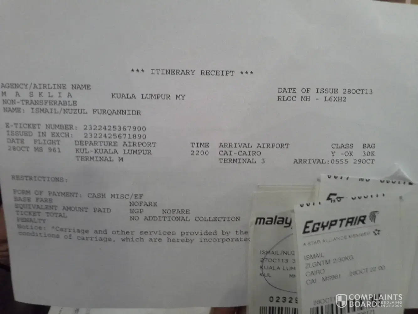 I bought etihad airlines from penang to cairo on 27th october 2013.
