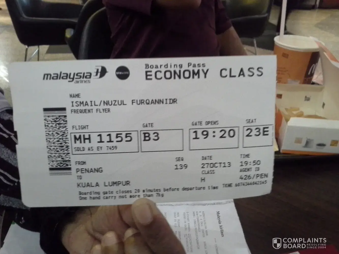 I spoke with the senior manager on duty on Saturday night, Shahrin Mohamadnazir, and he took copies of my tickets, and confirmations, and he said he would be registering this as a complaint. They also confirmed with Hafiz Yusof who was managing the queue, that he indeed said that this was the right place to queue.