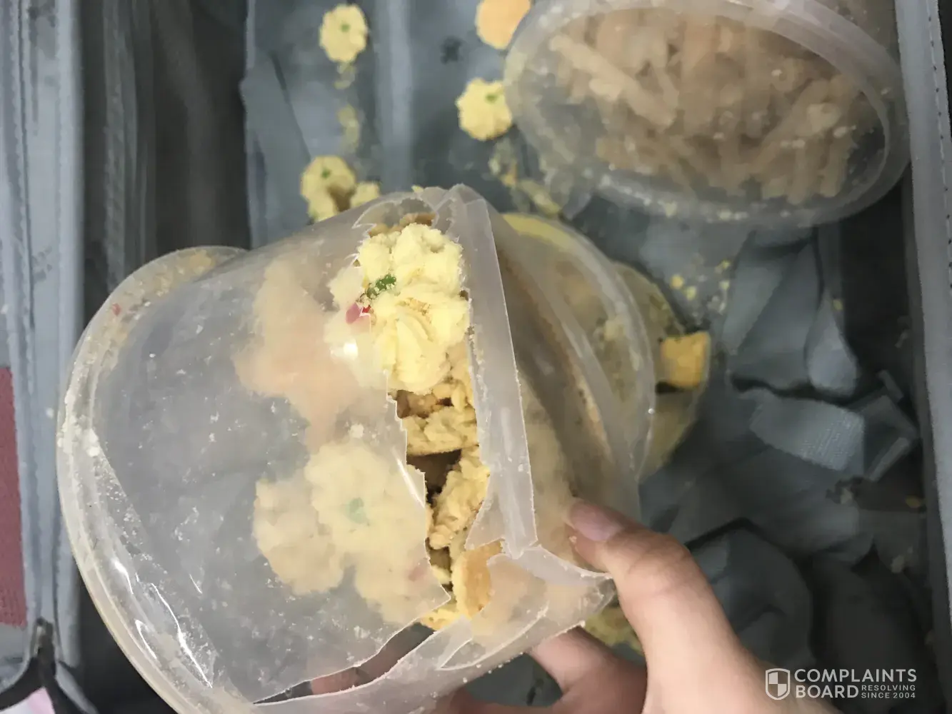 I want to complain to Malaysia Airlines Kuching to kuala lumpur ... after the transfer to Singapore. I want to sell all the cookies on the suitcase all broken ... ... I can not sell ... ...HOW NOW ???