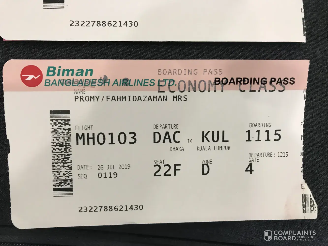 1. My wife (Nambrath Rajkumari Wesley) and I (Dennis Vishwapremi Wesley) were booked on MH 105 from Bangalore to Kuala Lumpur on Aug 25, 2019. We took the flight and landed safely at Kuala Lumpur, per schedule.