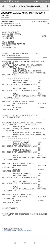 ETKT- 232 [protected] For Mohammed Asraf Uddin.
