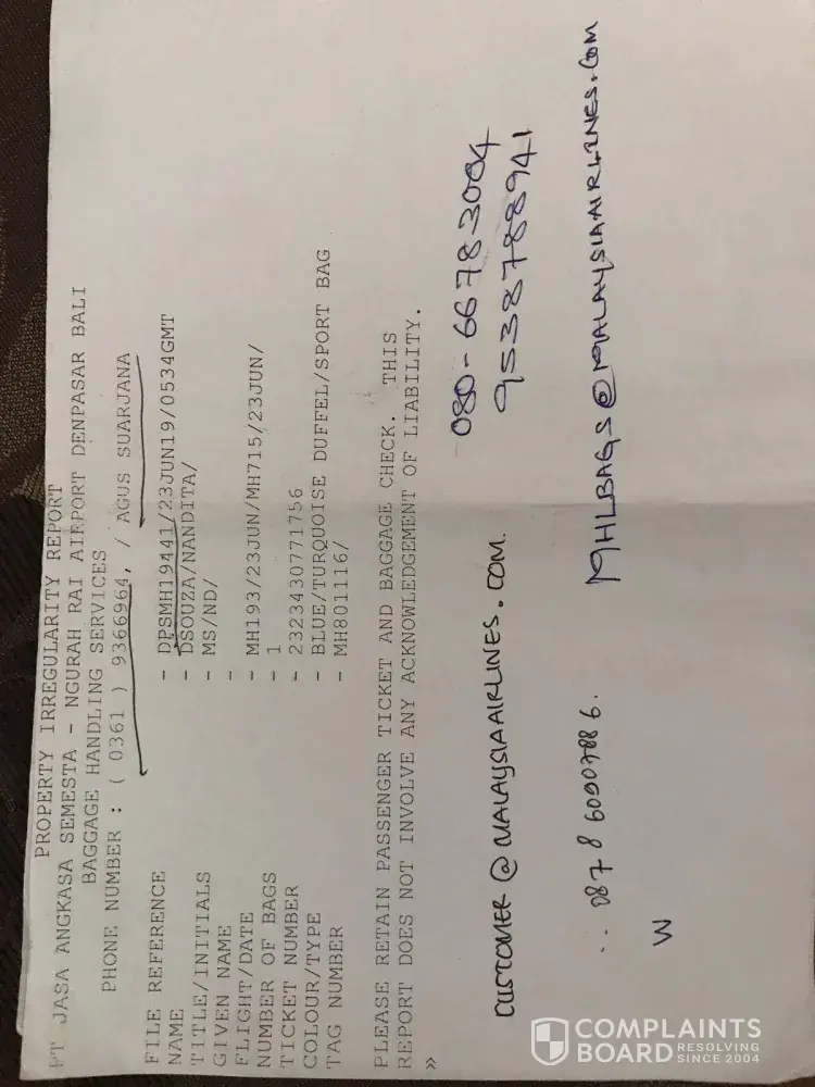 Finally on 29june when we checked in for MH850/MH192 for our return to BLR, we asked again and the agent informed us that the bag was not received. We specifically told them we are leaving Bali, if the bag is found please send it to BLR.