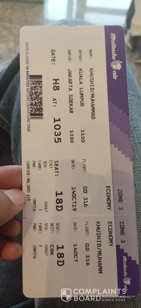 VERY VERY DISAPPOINTED with MALINDO AIR because of this situation.