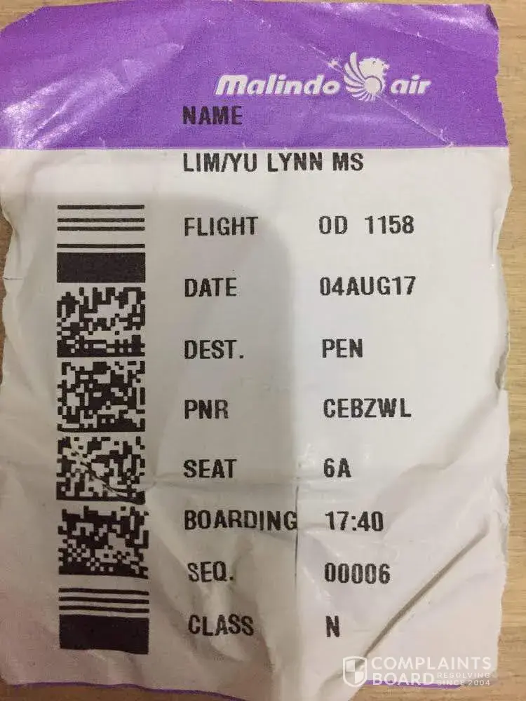 Copy of the complaint sent to Malindo Air which is declined - Now I am in the process of proceeding further, including filing a complaint before the Commerce Commission here.