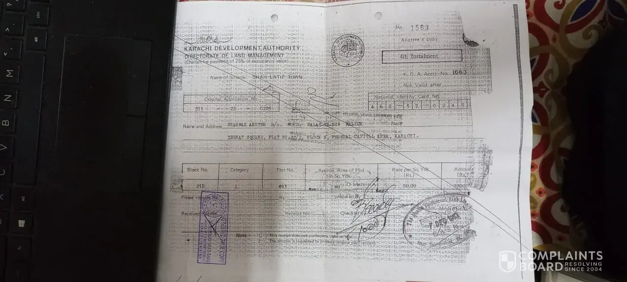 After completion of my all the installments in December 2019 Mr Rana Muzzamil asked me to submit the pay order in favor of MDA for Rs 150, 000 (PO# 4584155 Rs. 90, 000 + PO# 4584156 Rs. 60, 000) which was expired after 6 months and my transferred process not done. Which was I refunded from the bank after cancellation stamp imposed by the MDA officer. When I enquired about the project with MDA counter staff they informed me we not aware about the society and it is not listed in MDA record. I kept follow up with Mr Rana Muzzamil after allotees pressure Mr. Rana Muzzamil arranged meeting in MDA (Shahrah-e-Faisal branch) with Mr Ateeq (Cell# [protected]) Mr Ateeq tried to assured us that society is legal but due to some payments not yet submitted by the builder that's why MDA is not allowing builder start work in the society. Mr Ateeq have showed us the society details in one of counter computer in excel file in the name of Mehran society.