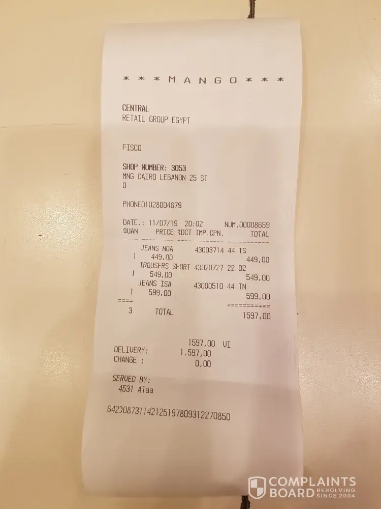 Read full complaintmango clothing branch in egypt