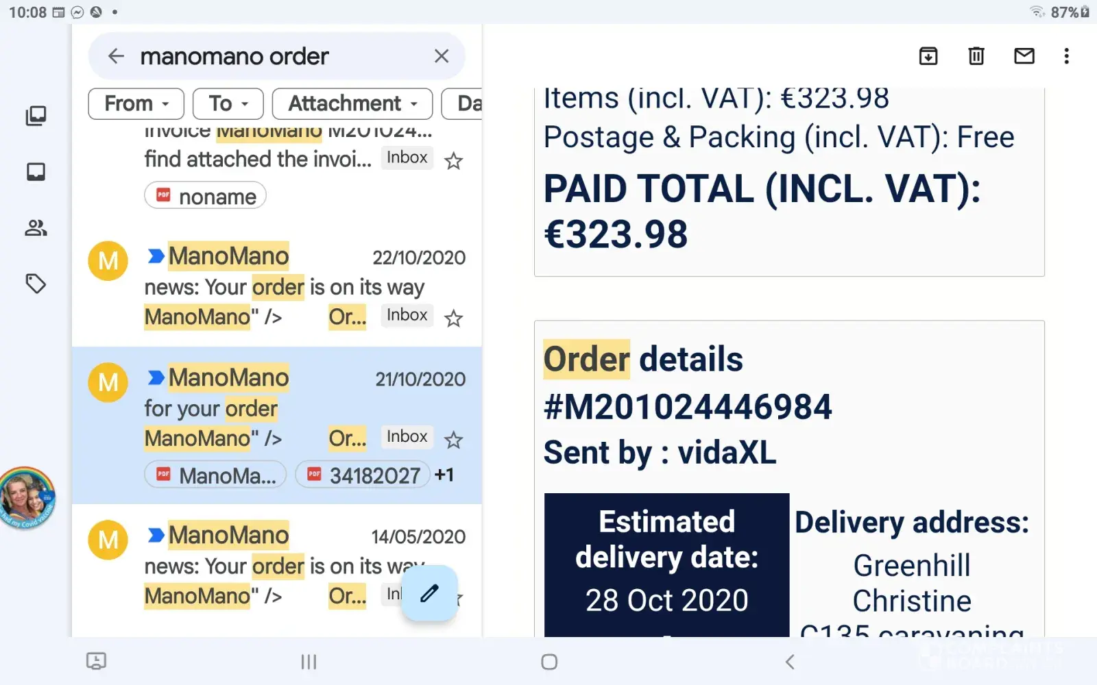 Since then I have made numerous calls to Manomano and hold umpteen emails sent and received, spoken to 3 different people at this company but still as of today I have not received my money back.
