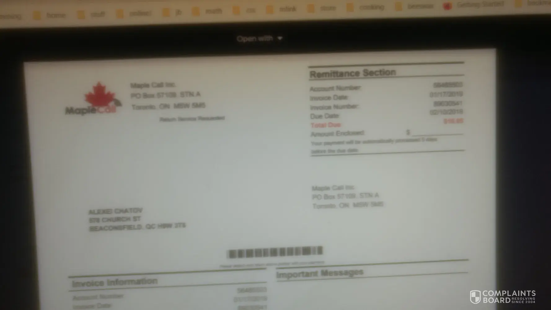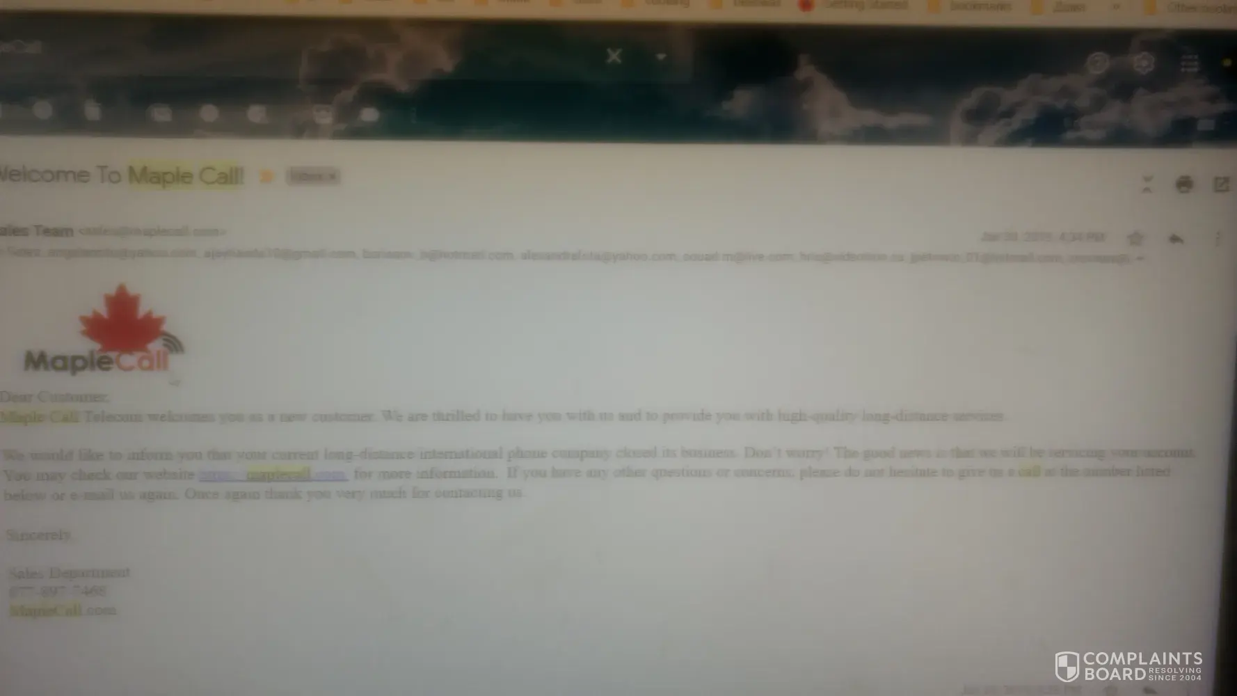 I received a voice message on May 31, 2019, from a customer representative named Remus on behalf of Maple Call about a balance of an invoice. I called back on June 3rd and spoke to another customer representative explaining that we do not know any Maple call company and we never had an agreement with them. They said that Blutone company we had our international calls before went out of business and they took over. I told him that we found out about it because suddenly we had to pay through Fido, our local provider, a lot of money for the international calls. The guy went on and on saying that we have 123$ balance to pay.