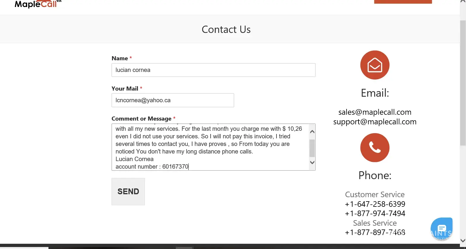 I've been receiving bills from MapleCall for services that I never signed up or agreed to. I've notified the company of the situation several times via email and received nothing except an automated response.