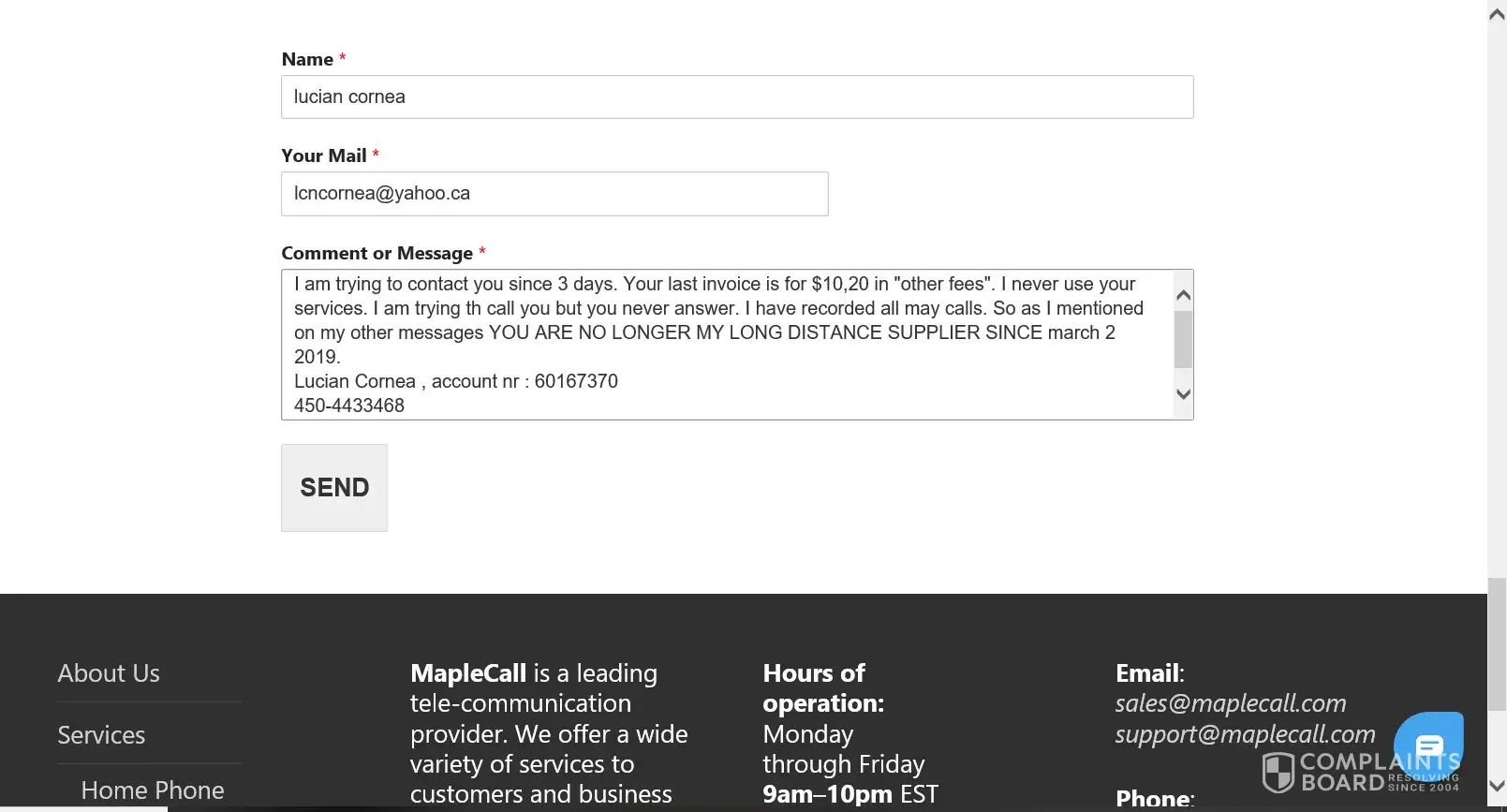 Since Maplecall took over there is nothing but problems