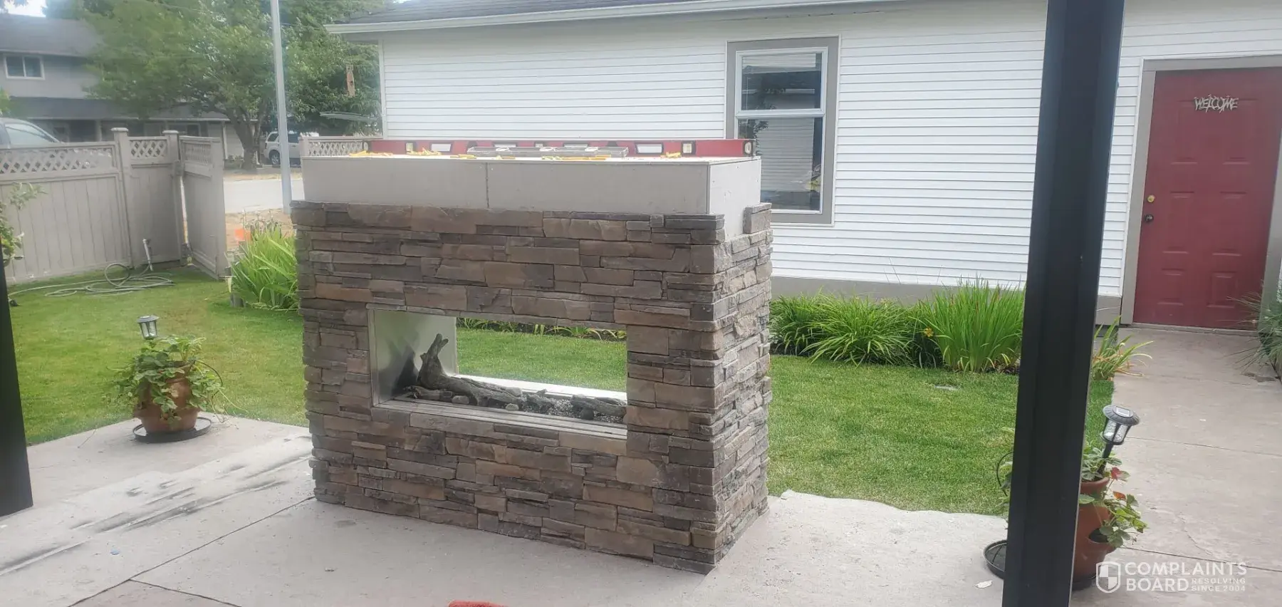 the fireplace was completed and is stunning, although there is no mention of that aspect in this complaint for some reason.