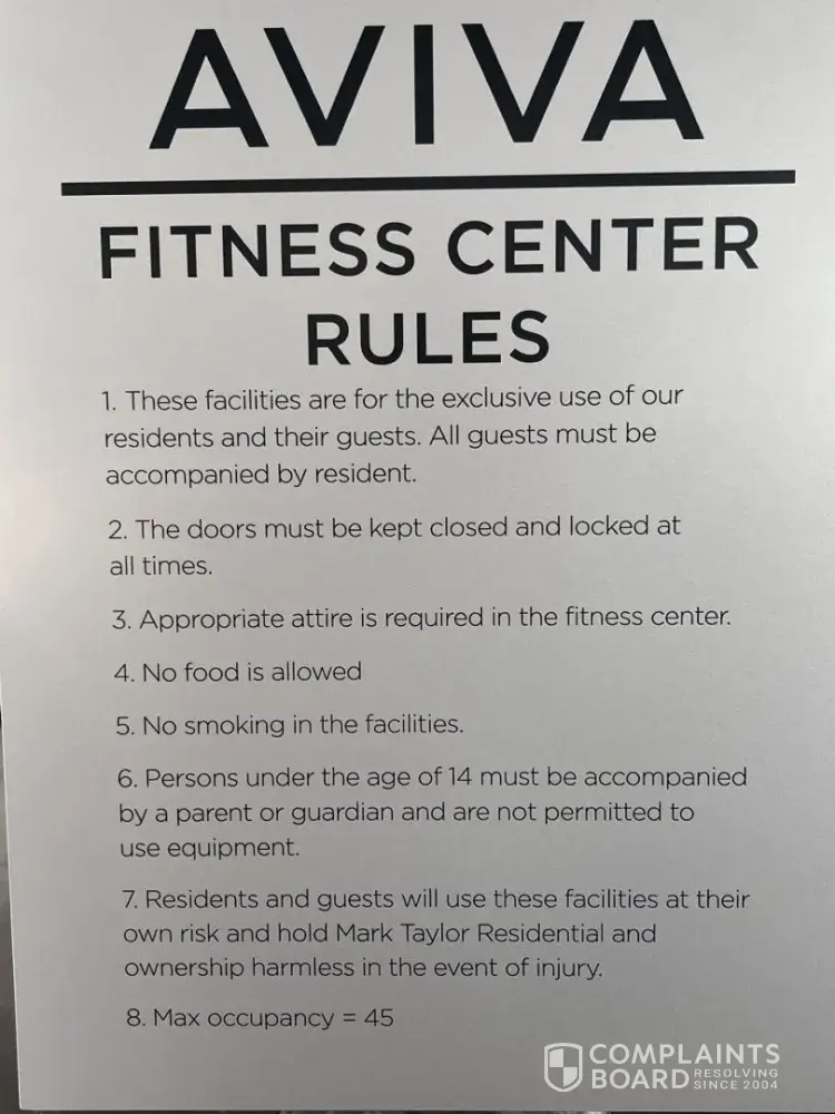 I live at the Aviva complex in Goodyear AZ. The gym has become a playground for small children as young as 3-years old. Yes, they are accompanied by their parents. I have witnessed a parent putting their very small child on a treadmill leaving them unattended while the equipment is running, not a good idea. This is a huge safety concern. Also, these...