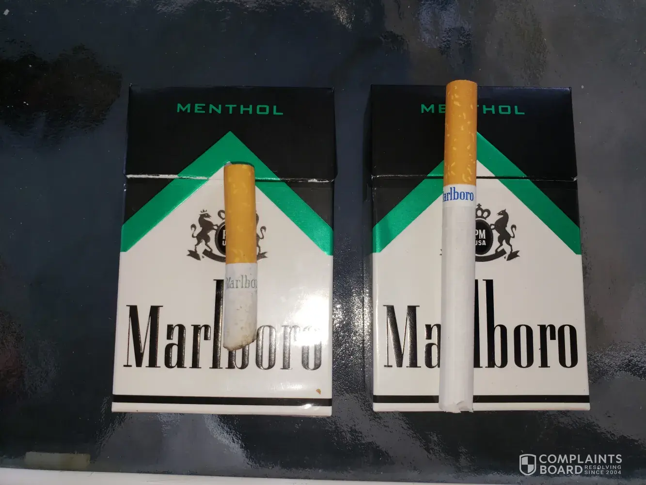 So I live in harford county Maryland, i smoke Marlboro black menthol 100s, I have smoked this brand since they came out . So I have grown a custom to how they taste and look . The past hmmm...I'll say 2 to 3 months...stores that sell tobacco products walgreens, royal farms, sheetz, 711, schell, have recieved Marlboro black menthol 100s but when I have baught them and opened the pack what I find inside are not at all menthol blacks . There regular Marlboro menthols, the green and white pack. They are no longer with blue Marlboro print and no line now they look exactly like Marlboro menthol with green Marlboro label and 2 gold lines. Packaging has changed so I thought okay maybe they just changed the cigg look as well as the box, but no first that dont make sense because why would you change it to look the same as regular Marlboro menthol, also as I stated I have smoked these for years and i know what they taste like and these are not Marlboro blacks . Idk how it has been done or what but I know what Marlboro blacks taste like and these are not it . It's sad that I might have to change back to Newport after all this time because that was the brand I smoked then I found these which were cheaper and kinda better . But now I have wasted 100s and 100s of dollars over the past 2 -3 months buying these ciggs hoping I get the right pack with the actual Marlboro black menthols inside. A few stores have been lucky to recieve the regular kind but go out fast and it's right back to the bad packs . Idk what's going on but I find it crazy that no one else has complained . Cuz I know damn well what my cigg taste like and these are not Marlboro menthol blacks . And I'm tired of wasting money just to get ciggs I dont wanna smoke in a pack of ciggs they shouldnt even be in ! I'm getting highly upset . My boyfriend has complained already and only response he got was about packaging yeah we kno packaging changed but the cigg look and ciggs inside should not taste and look like regular Marlboro menthols...I'm losing money and I'm not fond of losing money .
