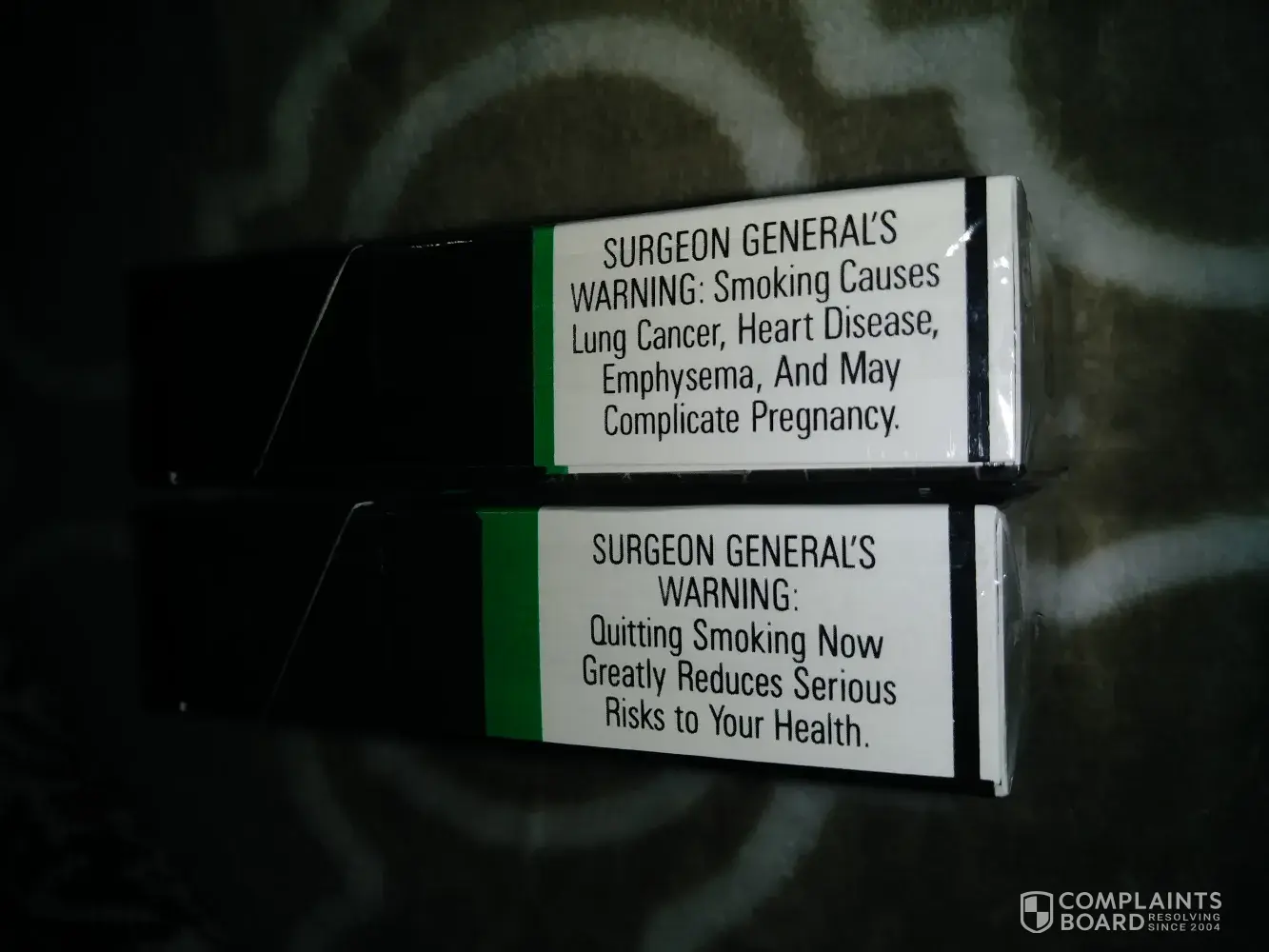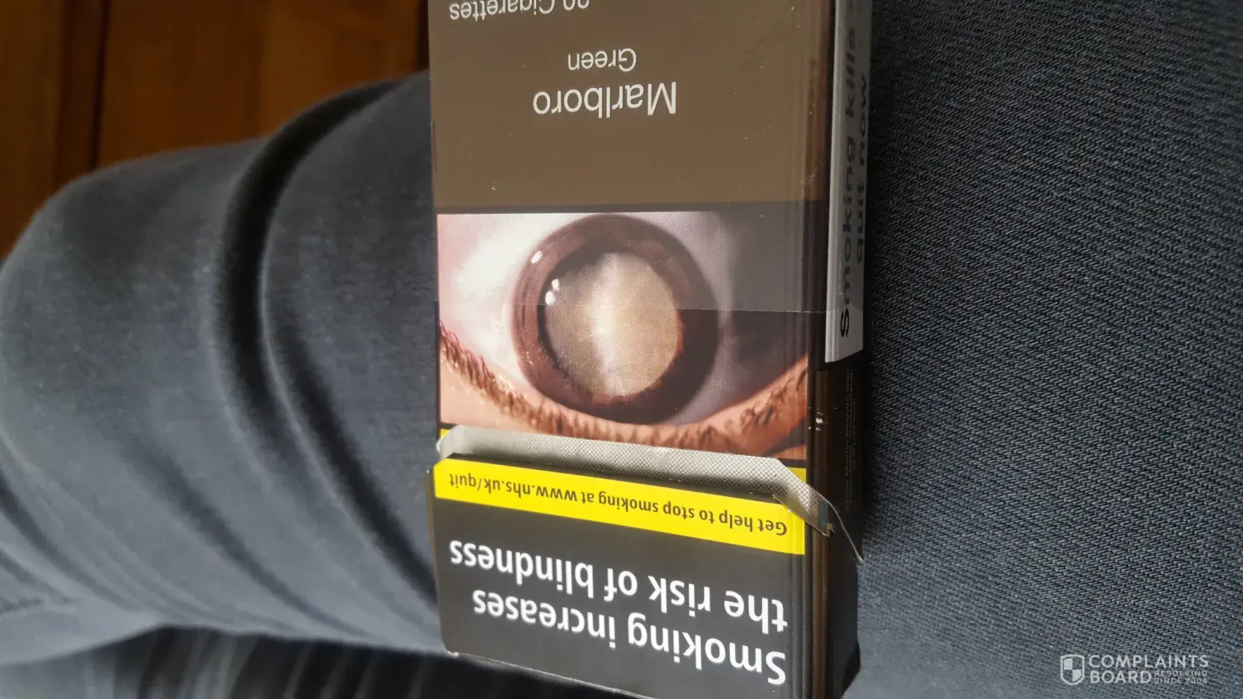I happened to see your complaint. I am a Marlboro user too. I noticed that there was a warning on your pack of green that read "increases chance of blindness". WTH is that all about?! Also, how much do you pay for a pack of Marlboro in the U.K.? Here in North Carolina, I pay $5.75 a pack for regular Marlboro red.