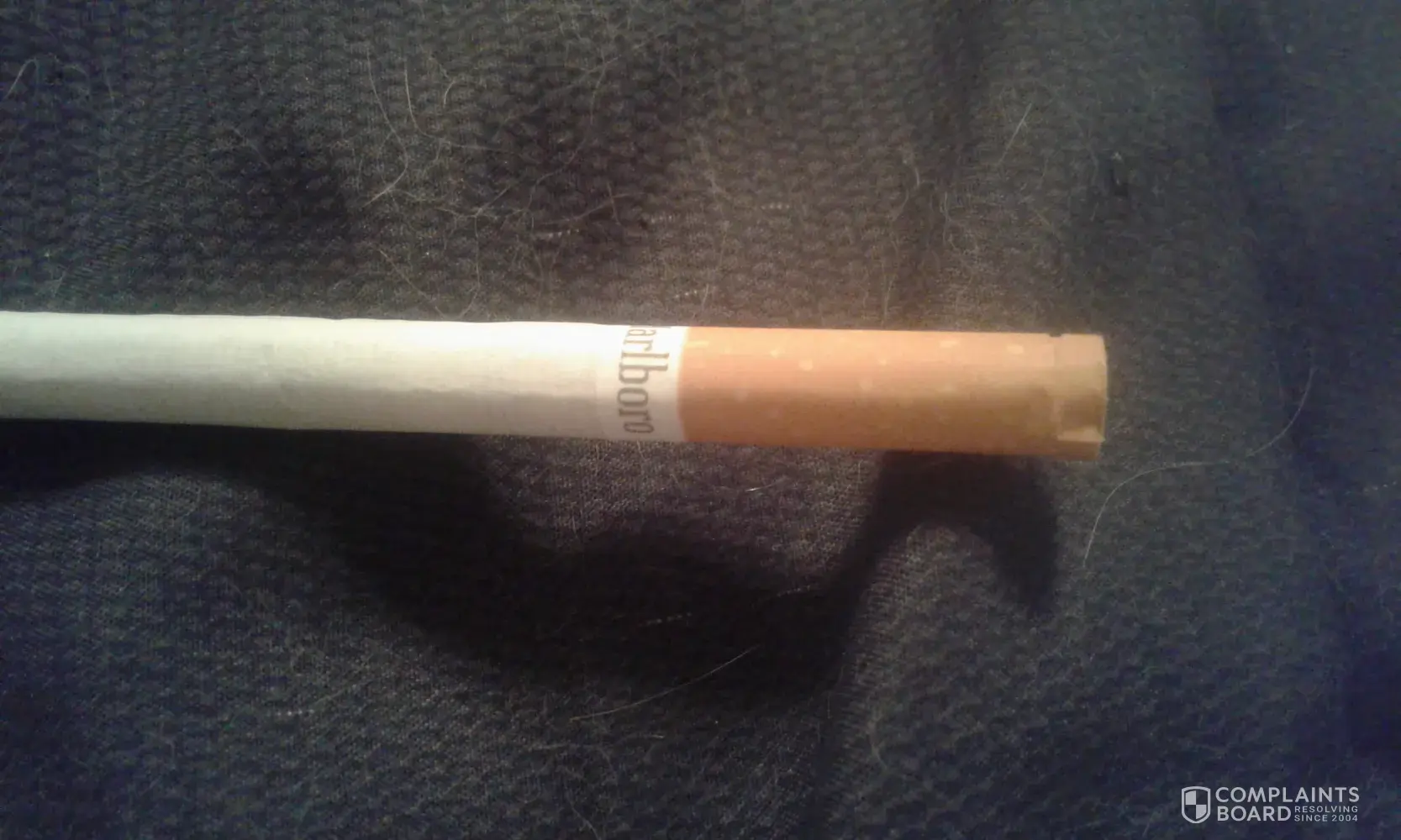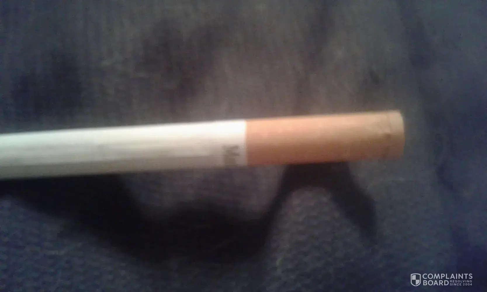 am recently disappointed with the marlbaro beyond cigarettes. There are either holes in the cigarettes or stick-like objects as seen in the attached picture. It is very noticeable as these objects do not burn and in that picture it perfectly shows how much it takes away from the cigarette once taken out . This has been happening for the last few months in almost every packet I purchase and that is the reason for this complaint. And I buy from various shops so that does not make a difference.