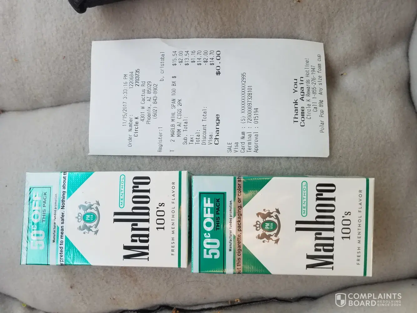 Barrybdc you are right. I also live in Phoenix AZ, and I buy my cigarettes from Circle K on 7th ave and Broadway. I have the same complaint. It does no good to argue with them.