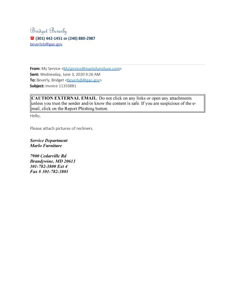 My name is Muatassim Aziz, and I bought furniture from Marlow at Alexandria on February 5th, 2023, for a total amount of 13255.02 having invoice# [protected]. We were told by our customer service representative that we will receive first delivery which should include all items except one Queen bed on next Saturday, Feb 11, 2023. We confirm from the Sales rep that deliver crew will be wearing shoe cover when entering our house. I live in a town house which is about 90% carpet. Rest is the kitchen are where we have a hardwood floor. Delivery from Marlow arrive as agreed, and the crew did wear the shoe cover. However, all furniture except the sofa set was either scratched or damaged. Therefore, we received the Sofa set and return the rest of the furniture. After calling the Marlow, and having a run around of a week, they ensure us and that we should receive all our furniture except the Queen bed next Saturday on February 25, 2023. As scheduled Delivery Crew arrive on February 25, 2023, but this time the crew without even seeing my house refuse to wear the shoe cover. We tried explaining that last crew did wear the shoe cover and that we just have new carpet put on the stairs and bring shoe especially on a rainy day just not going to work. The Delivery crew still refused and in addition informed us that most of the items sent were the same items sent last time and they are either scratched or damaged. After hearing that we called the Alexandria Marlow store to talk to the Sales representative, and tried explaining her that delivery folks are refusing to wear the shoe cover and some of the items seems to be damages as per the delivery crew. However, she keep on insisting that it is against their policy to wear shoe cover, even though we had it confirmed from Sales Rep and last delivery crew wear shoe cover. Customer Sales rep we called was not only rude she hangs up on me. After that we (Myself and my wife) decided to drive to Marlow to complain the manager about this behavior.