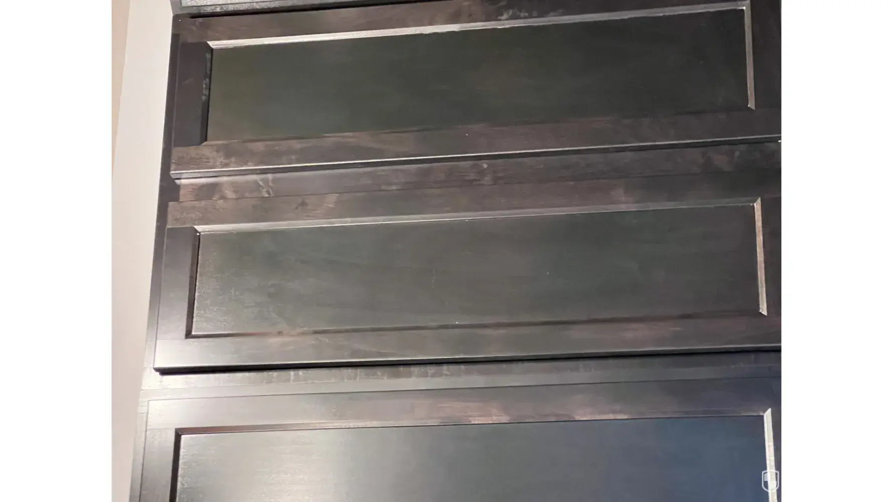 34. The cabinets aren't put in correctly and you can see the gaps in them when you open the doors