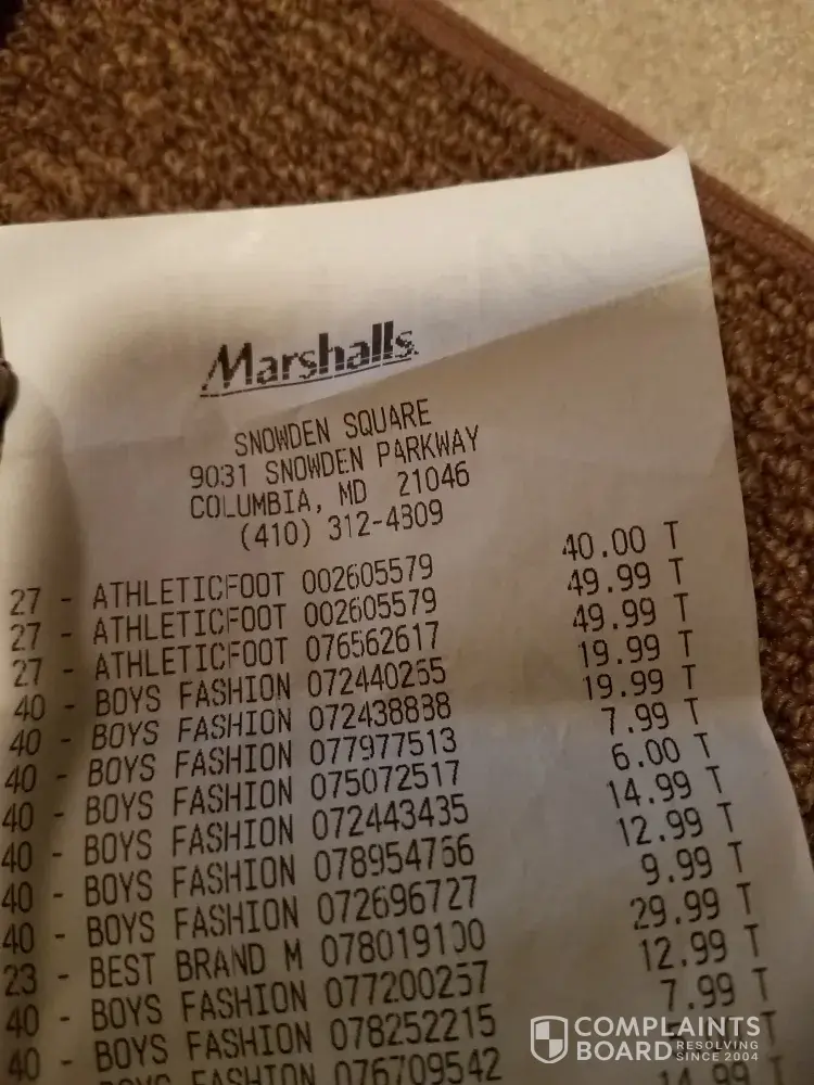 I went to purchase apparel and shoes items for my kids at the Marshalls store in Columbia, MD on May 19th, 2017. Gosh! This store must have the record for having the worst customers service EVER!. I got my items to the register and immediately got an attitude from the cashier when, I asked why an item with the same skew number, same pair of Nike shoes, same size, came out the same season has a differential in price. The differential in price was $9.99, but it was the same exact shoe with different colors. The cashier couldn't make any sense of this question, all she said was ".. it happens like that." Shortly after she uttered her words, she asked if I wanted it? (In a very rude manner, even my 13 year son took notice of it). I didn't want to make a scene or disrupt the flow of Business so, I paid for all items worth over $300. I decided I will go to the right sources to make my complaint.