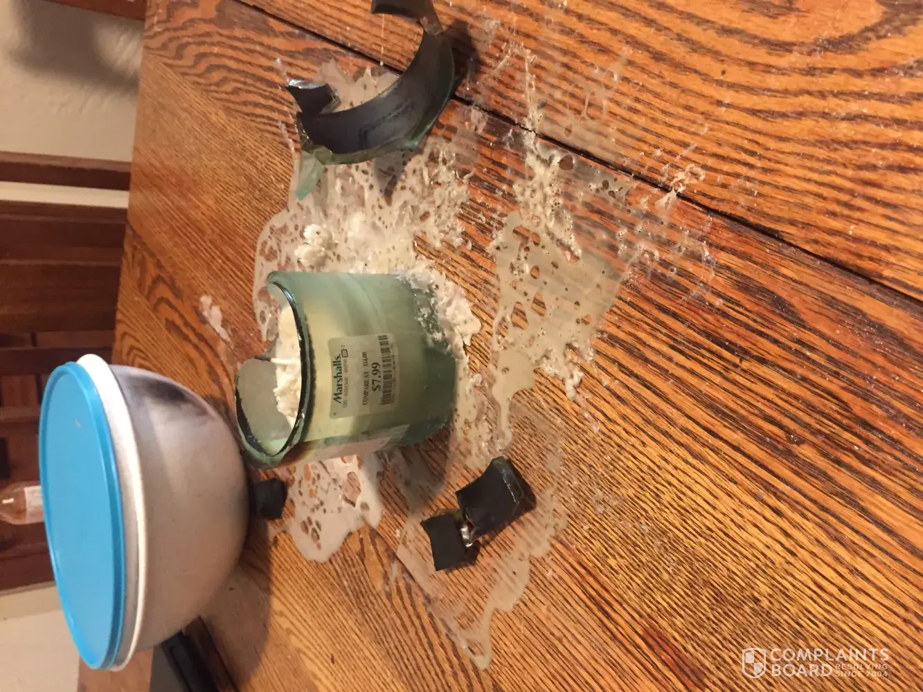 I had it sitting on my dining table this afternoon and I fell asleep around 4pm only to wake up at 4:30! 30 minutes later to my smoke alarm in my home going off and my house filled with smoke because the candle wax had caught on FIRE! And the candle was broke and burning wax was now on my oak dining table! It also burned a bowl that was on the table... THANK GOODNESS for the smoke alarm ! My 2 year old son was asleep in his room as well I was only some feet away on the couch so I acted quickly to put out the fire!