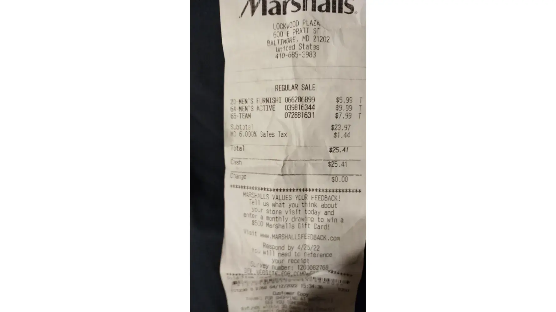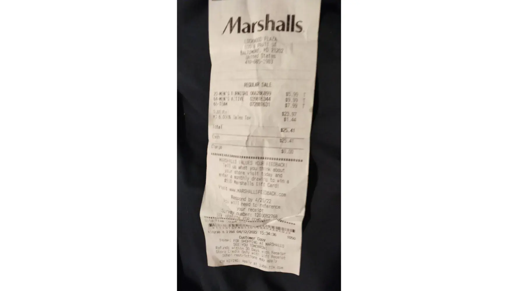 I was trying on my clothes in the dressing rooms, all the way in the back. Whoever been at Marshall’s dressing room they know the dressing rooms go pretty far the back.