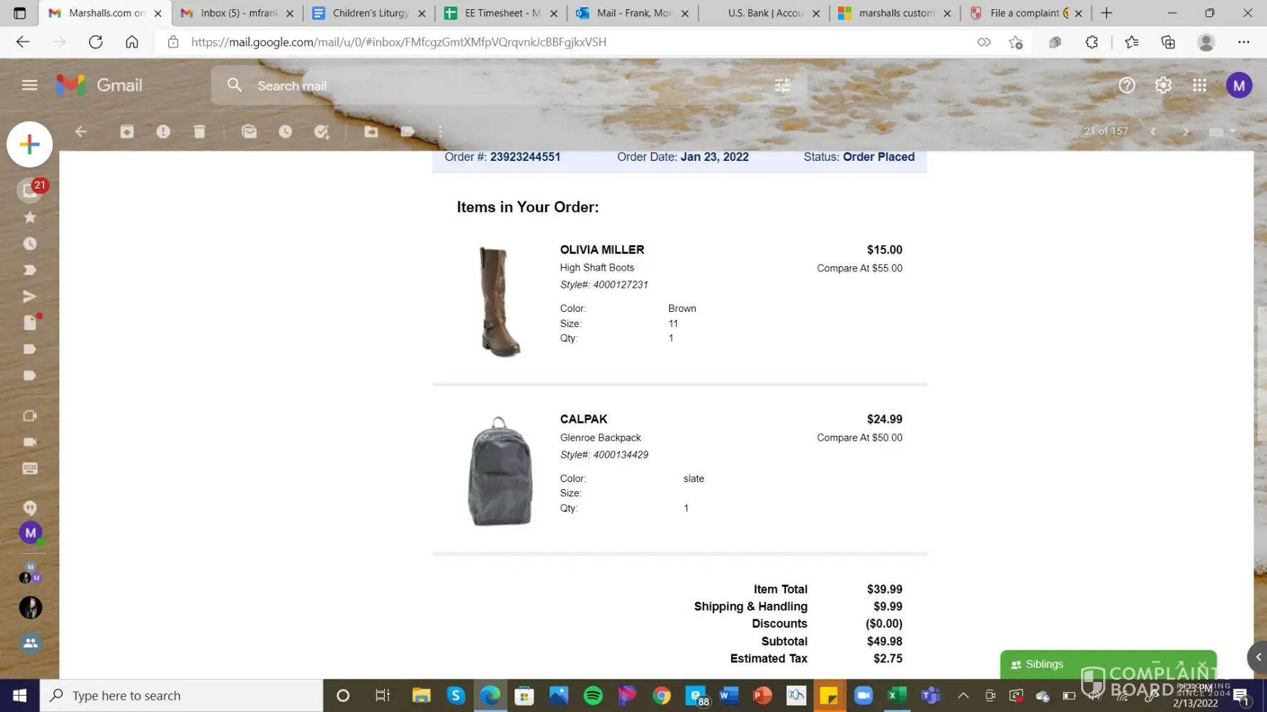 I filed a complaint about a week and a half ago about being way overcharged for an online purchase. I was told it would take 2-3 business days and still have not heard. I also called about the overcharge and the customer rep explained that's how Marshall does its online purchases, and I would be refunded within 5 days. Again, it has now been 12 days since that charge, and I still have not been reimbursed.