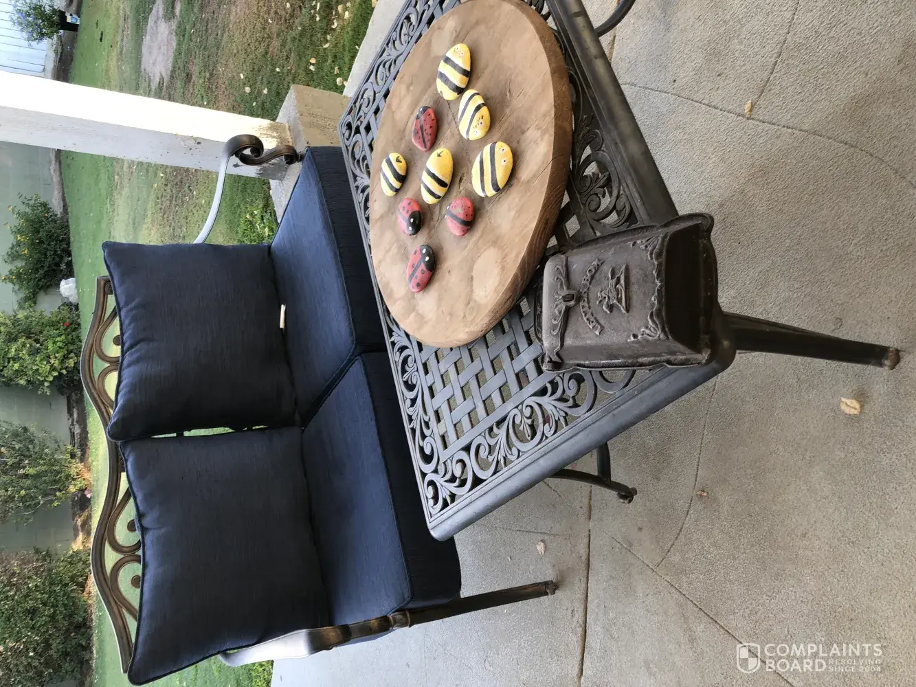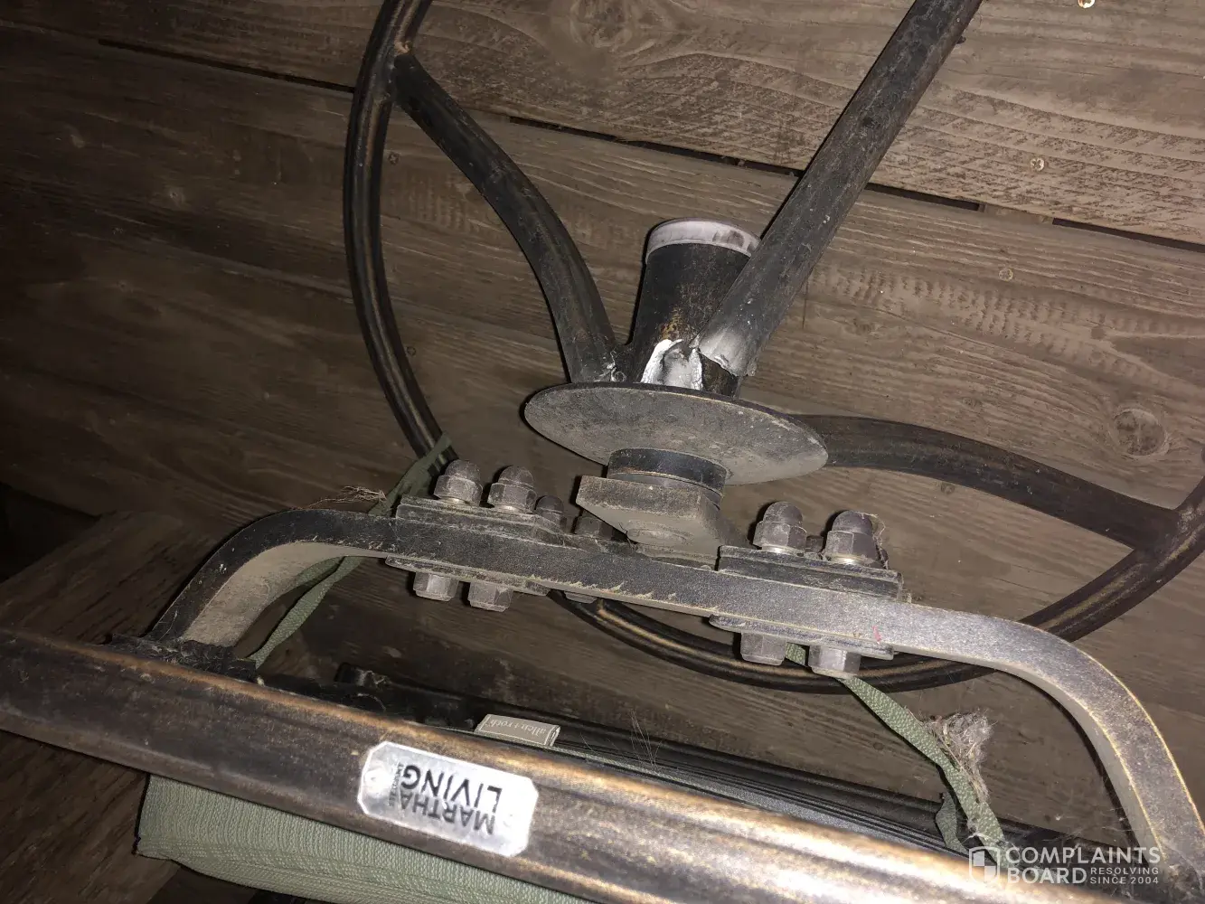 Bought a set which came with two chairs this was a few years ago nice that was not cheap. I had to family members almost get really hurt one hit his head the chair broke he fell back hurt his head really bad. Just this past weekend another family member went down on his knees in another chair just thought I would let you know very unhappy I don't think this is right First chair was new. Bought at Home Depot.