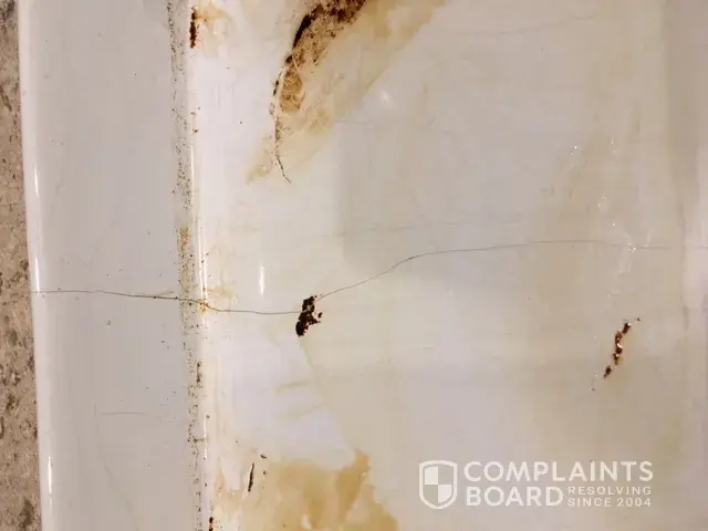 I purchased a 9x13 baking dish from Macy's a year or so ago. It is from the Martha Stewart Exclusively for Macy's Collection in red. It is a oven proof baking dish which I have used with no issues or problems since my purchase. Yesterday after baking a pork loin, I removed the dish from the oven and placed on a cooling rack. Within 15 minutes of removing the baking dish from my oven I heard a loud 'pop'. I removed the meat from the dish and found a large crack that ran across the bottom and up both sides of the dish. Juices from the meat had leaked through the crack on the bottom of the baking dish (see photo's).