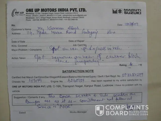 Review all maruti udyog limited complaints