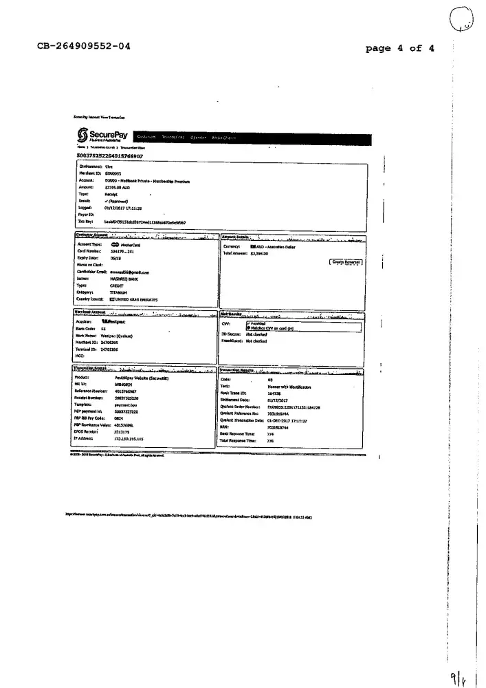 Unauthorised credit card charges