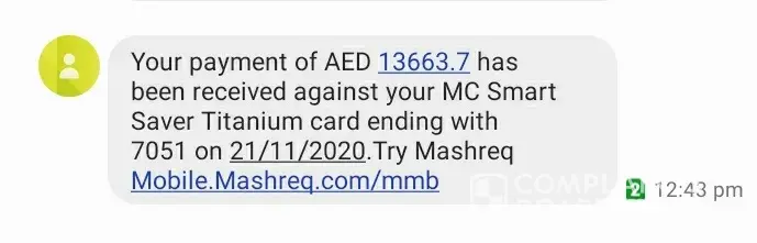 Mashreq Bank Payment not received